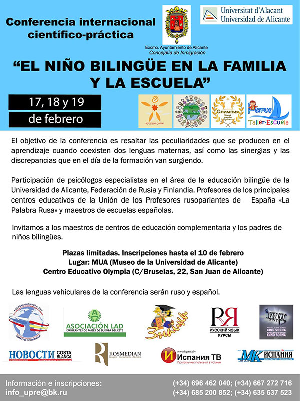 В Аликанте состоялось торжественное открытие I Международной научно-практической конференции по вопросам детского билингвизма «Двуязычный ребенок в семье и школе».